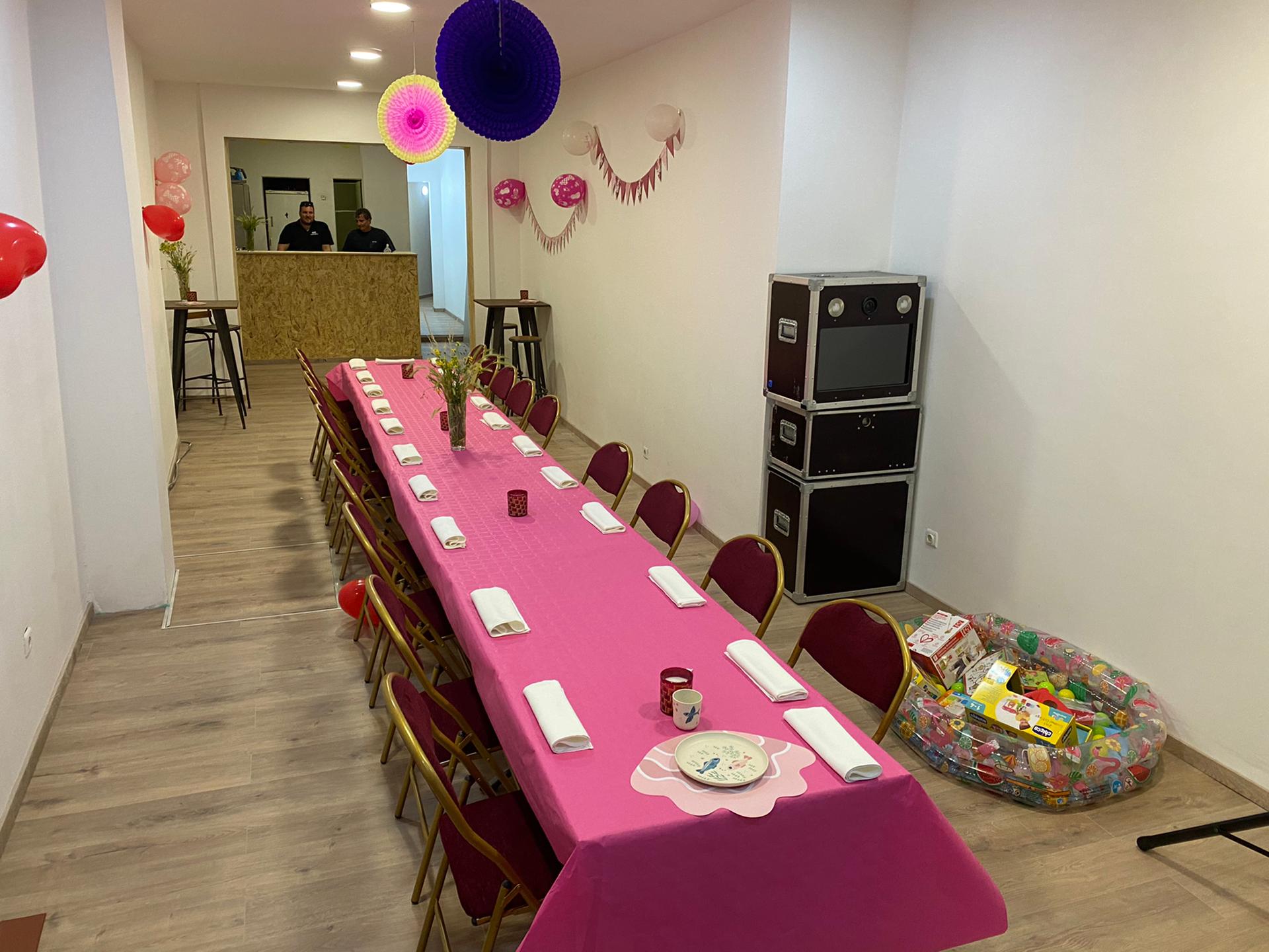 Dès le mois d’août 2021, nous sommes heureux de mettre à votre disposition une salle flambant neuve, en plein centre de Gosselies pour 45 personnes assises et 50 personnes en mode cocktail/soirée.